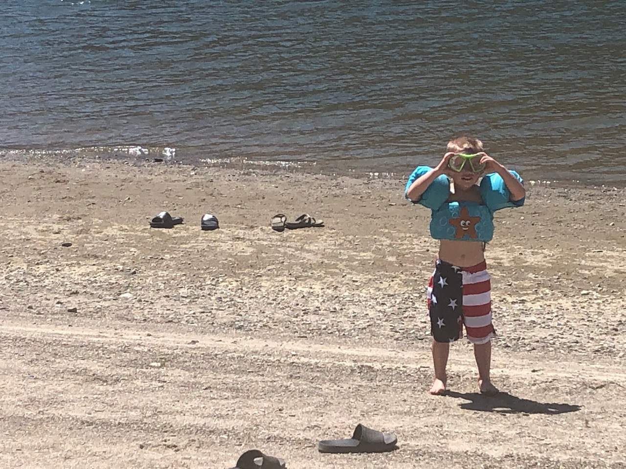 At this point, the day was pretty much shot for doing much of anything, so we decided to take the kids for a little exploration drive with our mini van rental. It was pretty hot and we all wanted to take a dip, Pyramid Lake was right across the highway, we paid the $12 and went for a swim. It was technically not an open swim area as it was all closed for the year still, although that didn’t stop us! Everyone was excited to get a dip in the lake, this was our first lake swim of the year. I can say it was a lot warmer then the lakes in Hinton, Alberta. It is only May 11th and we are swimming in the lake and enjoying it.