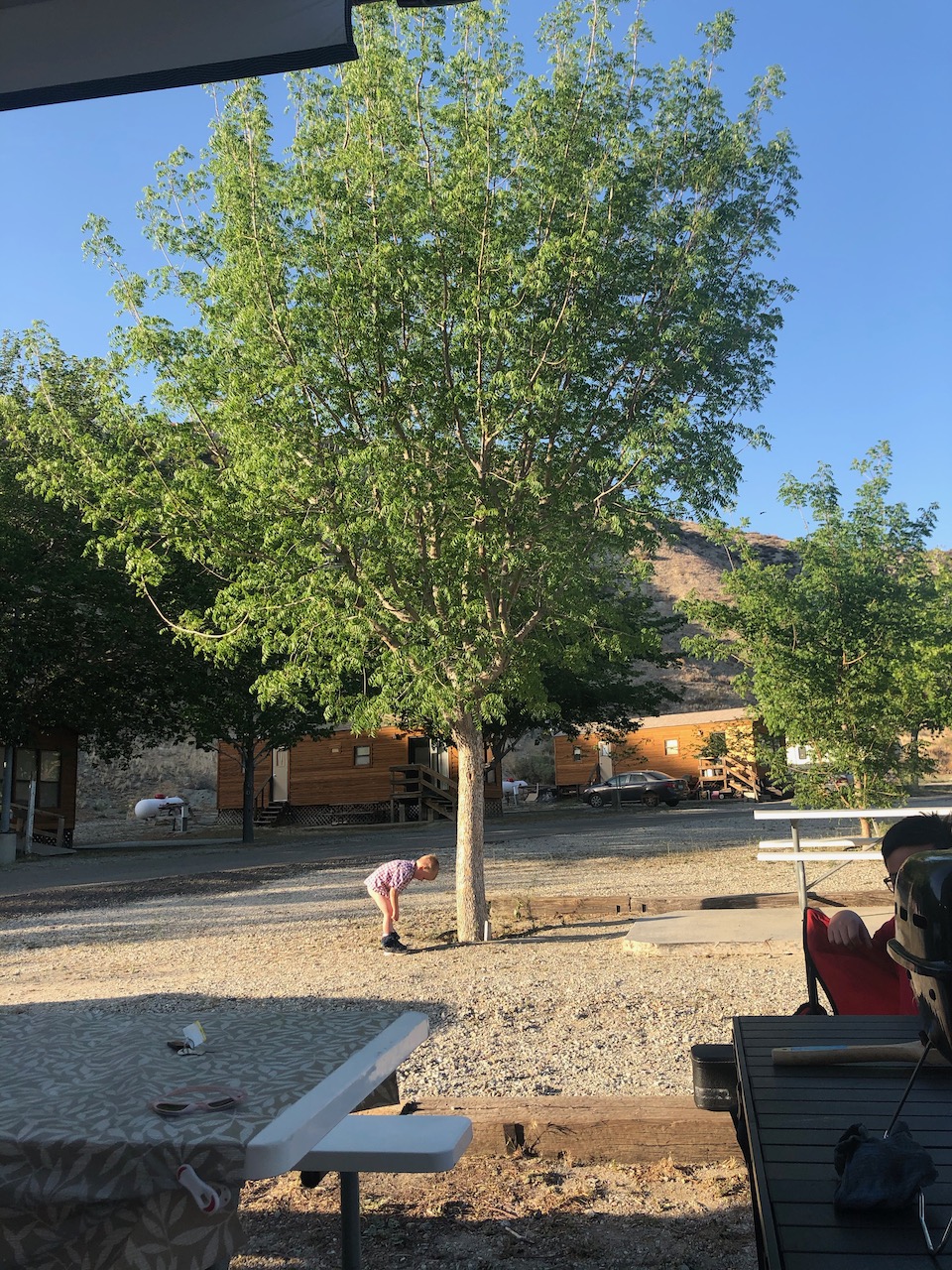 We searched online to find something along the way and not too far of a drive and we came across Pyramid Lake RV Park. We normally travel on Mondays as it makes it easier to find available campsites and we can get the weekly rate. With that being said we decided we would just stay at Pyramid Lake for a week. It was kind of in the middle of nothing but also right off the highway. At this point it was a long day and everyone was ready to setup and get settled for the night. We were disappointed because this campsite didn’t allow fires, and the pool and washrooms weren’t open. I would say for the price we paid at this campground we didn’t get the value. When we pulled in we talked about just staying the night and then leaving, but after we pulled in, Kevin noticed some sort of oil all over the front of the camper and the entire undercarriage of the truck.