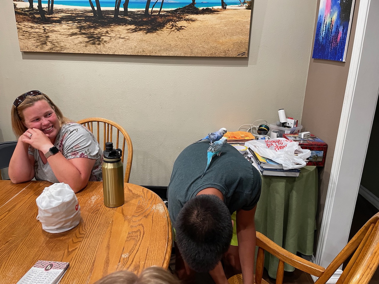 Our day ended by having a family supper, playing games, spending time with family and the kids playing with the birds. Overall it was a pretty awesome day!
